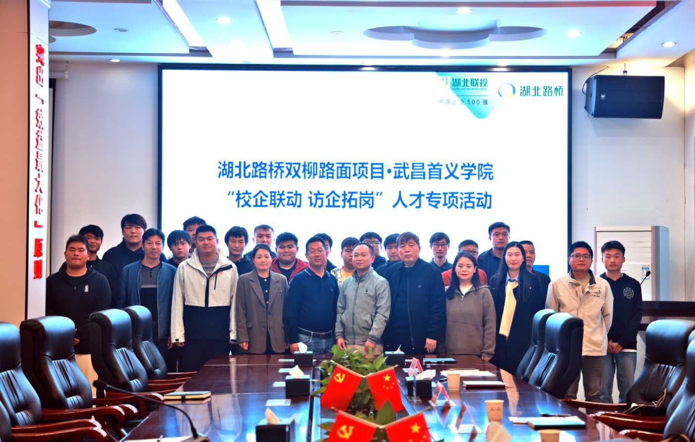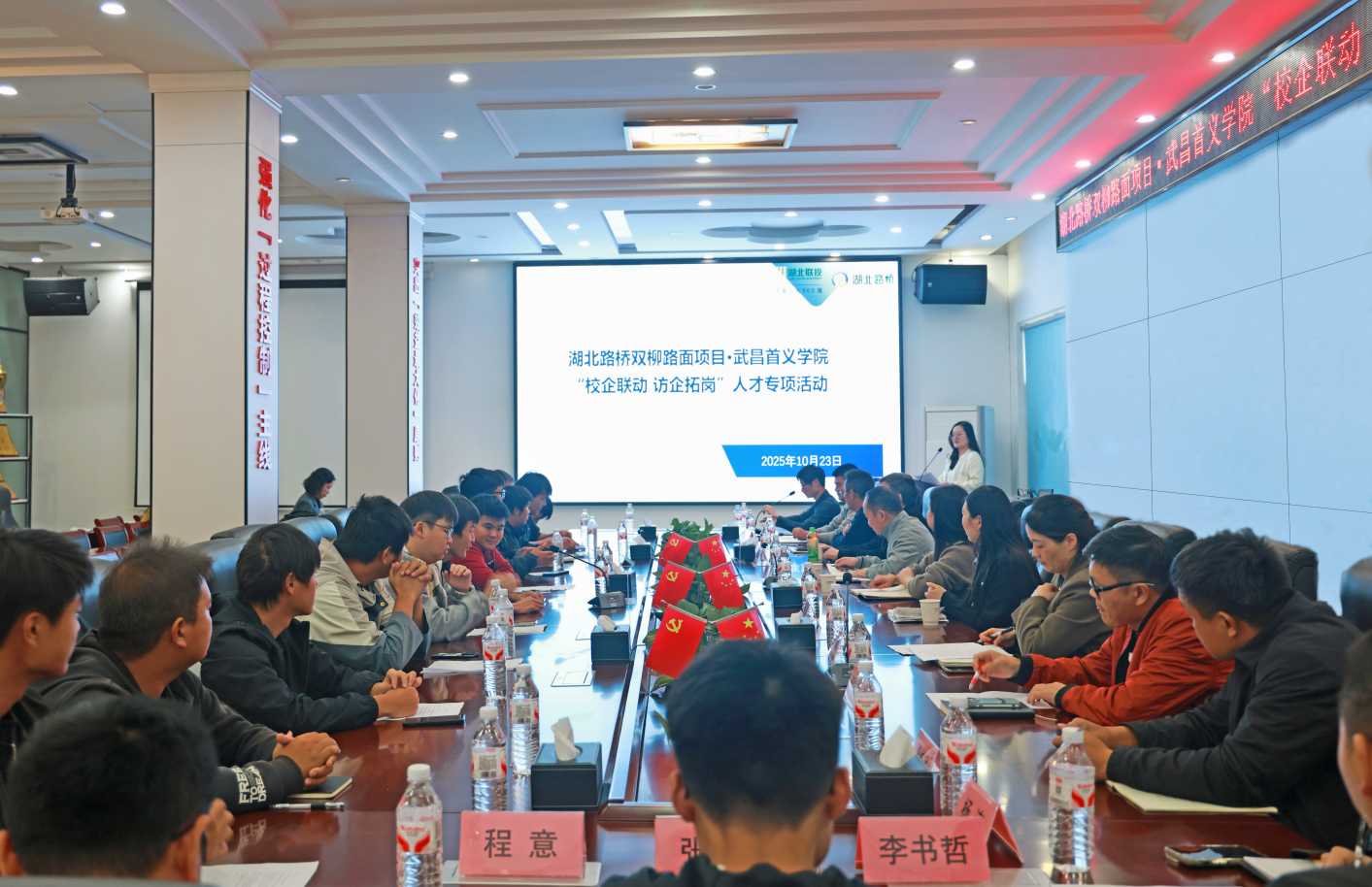 為深化產(chǎn)教融合、推動(dòng)校企協(xié)同育人,10月23日下午,湖北路橋雙柳長(zhǎng)江大橋路面項(xiàng)目部聯(lián)合武昌首義學(xué)院開展“校企聯(lián)動(dòng) 訪企拓崗”人才專項(xiàng)活動(dòng),與武昌首義學(xué)院校企合作處處長(zhǎng)、教務(wù)處副處長(zhǎng)周自倫等座談交流。